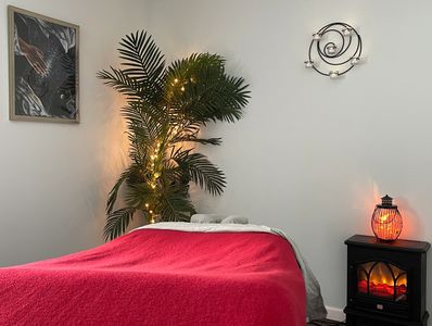 My studio has ample space and is well ventilated. I have two air purifiers running at all times. There is hand sanitizer available in several locations in the room, as well as a designated area to place clothes, coats and other belongings. There is a waterproof barrier between the bottom table sheet and the table warmer that is sanitized between sessions.
